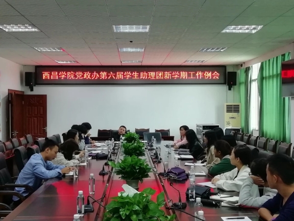 凉爽的微风吹走夏日的炎热,在绵绵细雨中,党政办第六届学生助理团开展了新学期第一次工作例会,对新学期学生助理团的工作进行部署,同时讨论了新学期招新工作的相关事宜。本次工作例会于2018年9月11日12:30在行政楼一楼会议室举行。会议由王力尉老师、莫色所极老师主持。  大会第一项 新学期工作安排新学期学习不能落下,工作也不能懈怠,清点办公室的物资并作补充,同时注意办公室内务的整理。将上学期工作中的不足提出来,并加以改正。 大会第二项 第六届负责人肖海斌宣布第七届助理团干部名单涉及到助理团的换新问题,拟定了第七届学生助理团的干部名单,并进行换新的工作交接。 大会第三项 招新工作的详细计划和安排 1、 视频宣传 2、 传单宣传 3、 摆点宣传 4、 各个院的班群宣传 大会第四项 大会最后讨论了如何带领新助理熟悉办公室的一系列事宜,严肃而活泼是我们一贯的宗旨,我们要让新助理体会到办公室的温暖。换届在即,要求每一位学生助理都全身心投入、同心协力创造党政办学生助理团更美好的未来。 |