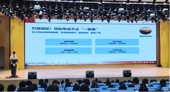 不仅如此,周锋还分析了行政管理、城乡规划、风景园林、旅游管理4个专业的特点及其就业方向,给同学们提供了发展思路。