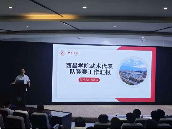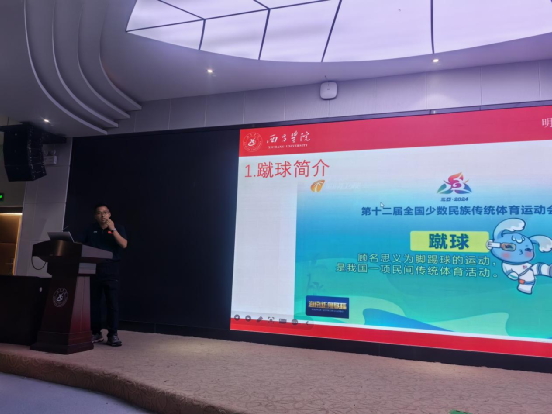 宣讲会在一部精心制作的宣传片中拉开序幕,影片生动展现了中华优秀传统体育的悠久历史渊源、凉山独特的地域文化以及这些项目在校园中的育人实践成果。随后,七支代表队主教练依次登台。民族武术代表队谢志民老师、民族健身操代表队王营婴老师、毽球代表队陈安老师、蹴球代表队李林城老师、高脚竞速代表队吕俊老师、陀螺代表队任骏铭老师、板鞋竞速代表队向磊老师,围绕项目特色、人才选拔、日常训练、参赛计划与安全保障等方面做了系统介绍。