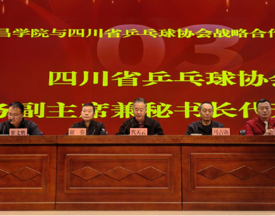 马吉勋在致辞中对与会嘉宾表示热烈欢迎,并介绍了西昌学院“应用型、地方性、协同化”的办学特色。他强调,学院始终致力于培养高素质应用型人才,此次与四川省乒乓球协会的合作,将充分发挥双方优势,共同构建“体教融合、学训并重”的人才培养新机制,努力将合作基地打造为未来乒乓球人才的摇篮。