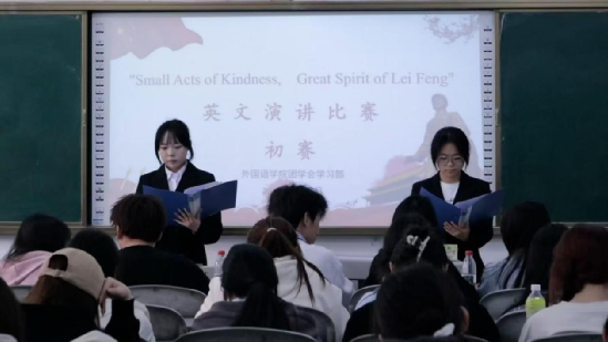 为激发同学们英语学习兴趣、提升口语表达能力,弘扬雷锋精神、传承中华优秀传统文化,我院于2026年3月19日在弘毅楼102教室举办“Small Acts of Kindness, Great Spirit of Lei Feng”英文演讲比赛初赛。