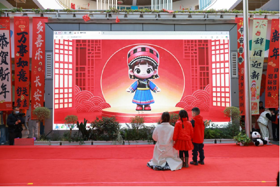 信息技术学院在持续推进各单位数字化支持的同时,以“AI+教育”为抓手,着力打造人工智能赋能民族地区学前学普的品牌化社会服务项目,推动学科影响力走出校园、深入凉山。依托科大讯飞星火大模型,信息技术学院师生自主研发了普通话测评学习系统,并在系统中创新设计了具有彝族文化特色的人工智能体“阿衣莫”与“阿牛惹”。活动现场,“阿衣莫”“阿牛惹”不仅与孩子们亲切互动,教他们学普通话,更以AI小主持人的身份,灵活贯穿活动流程,生动介绍环节、引导互动、调节气氛,展现了人工智能在教育场景中的多模态交互能力和实用功能。
