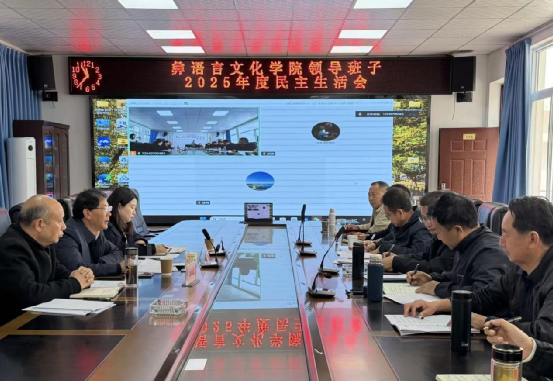 按照省委以及学校党委部署要求,2026年3月2日上午,彝语言文化学院党委领导班子召开2025年度民主生活会,深入学习贯彻习近平新时代中国特色社会主义思想,全面贯彻落实党的二十届四中全会精神,锲而不舍落实中央八项规定精神,推进作风建设常态化长效化,以优良作风凝心聚力、真抓实干,推进学院高质量发展。班子成员参加会议,学院党委书记陶际恒主持会议。学校党委常委、副校长曲木伍各和第三督导组到会指导。