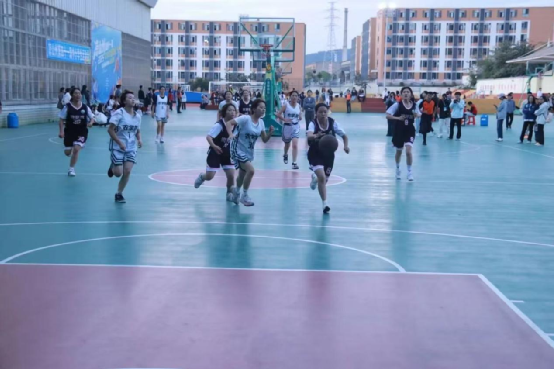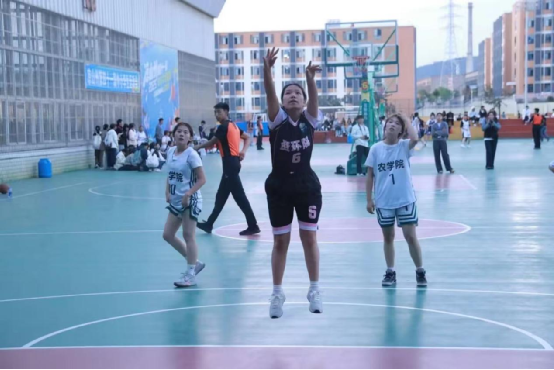 抬手,瞄准,起跳,投篮,篮球划破风的轨迹,在半空坠向篮筐——“唰”的一声,网袋轻颤,进球的脆响裹着场边炸开的欢呼,喜悦洋溢在场边。